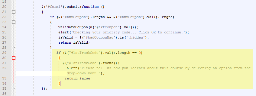 alert("Please tell us how you learned about this course by selecting an option from the drop-down menu.");