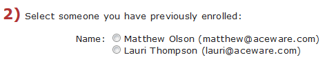 Removing a name from the list will remove it from the Select someone you have previously enrolled list on the Enroll Someone Else page: