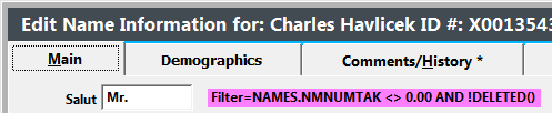 The Set Filter option also allows you to flag selected Name records for printing or reporting purposes.