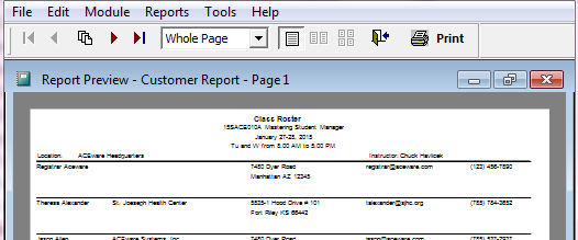 Use the Print Preview Tool Bar** to view pages of the report, zoom in or out, print, or close the Report Preview Window.